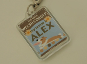 ドットブルー系バックのコーギーちゃん、ロン毛バージョンです♪