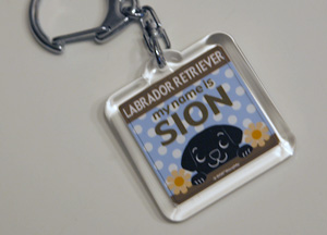 ネームタグの『アクリル両面・角』は、裏に名前が2つ入ります。